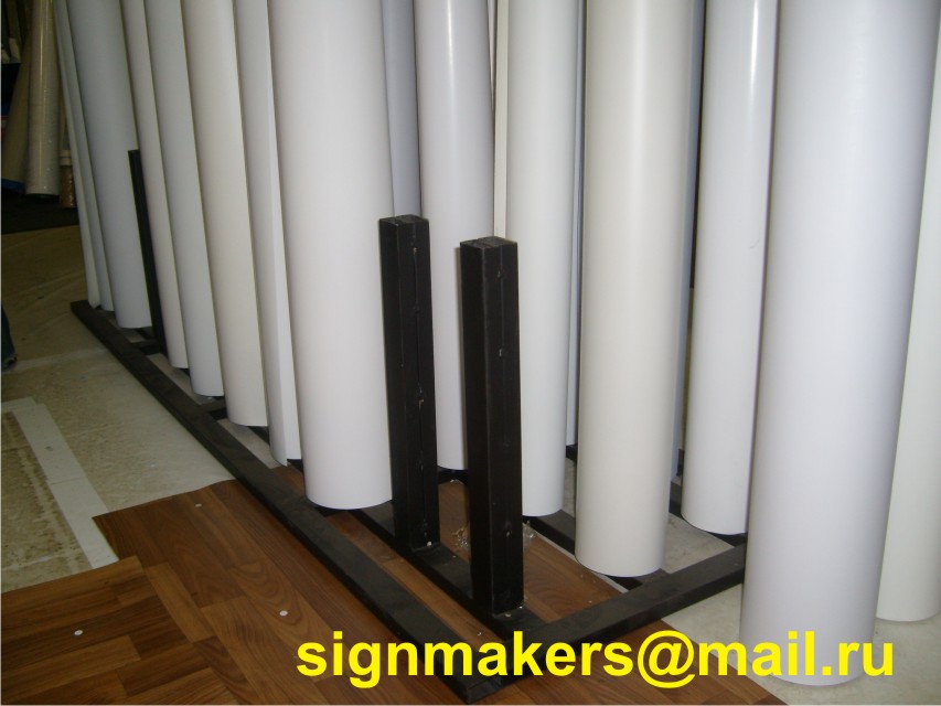 Сделали вот такую подставку под рулоные материалы (бумага, пленка, баннер) для наших партнеров, компании "Город Медиа"
